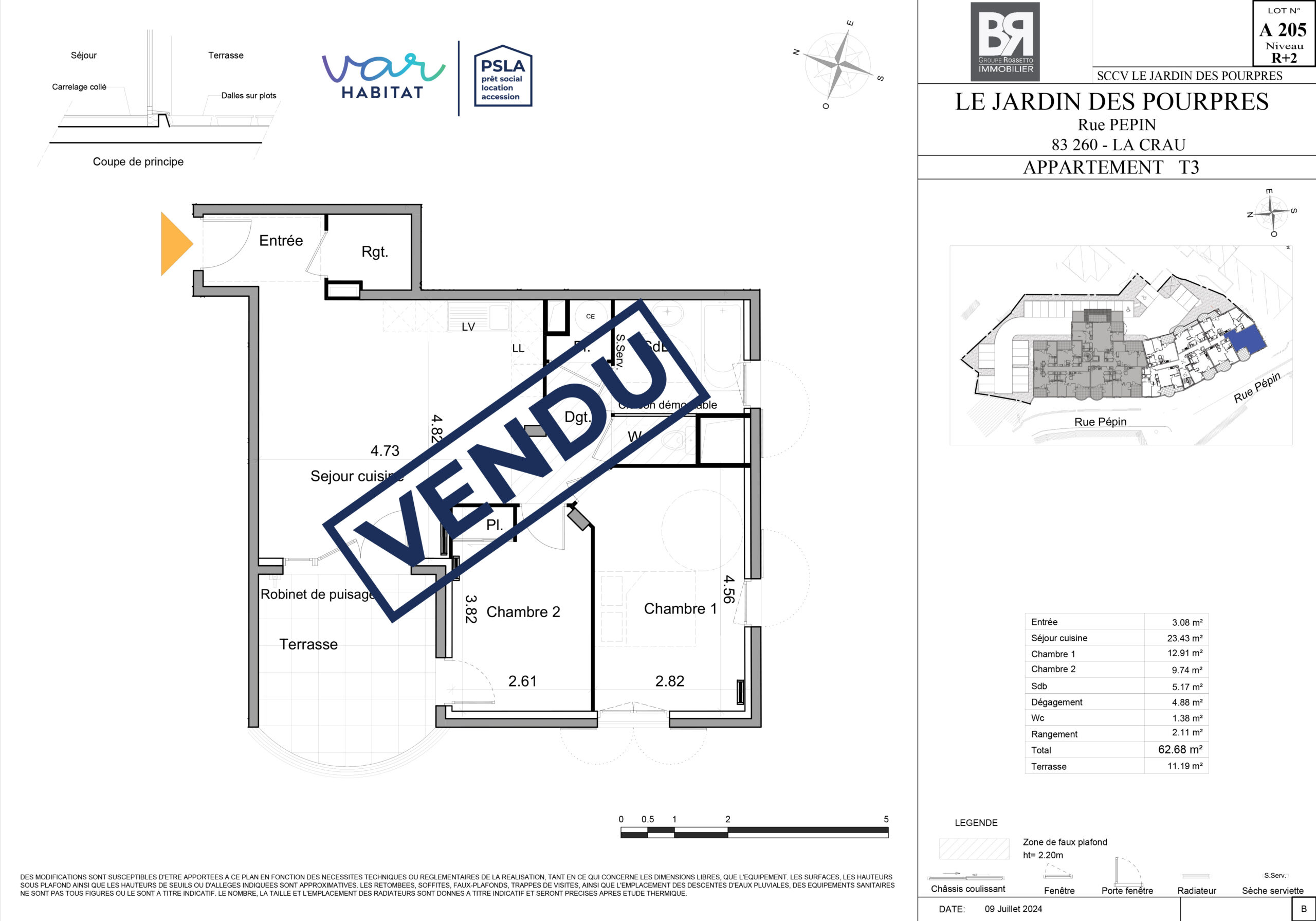 Var Habitat, dernière opportunité pour 1 appartement de type 3 au sein de la future résidence Le Jardin des Pourpres, dont la réalisation est assurée par le promoteur «Groupe Rossetto IMMOBILIER», et accessible à la vente via le dispositif du Prêt Social Location Accession (PSLA).